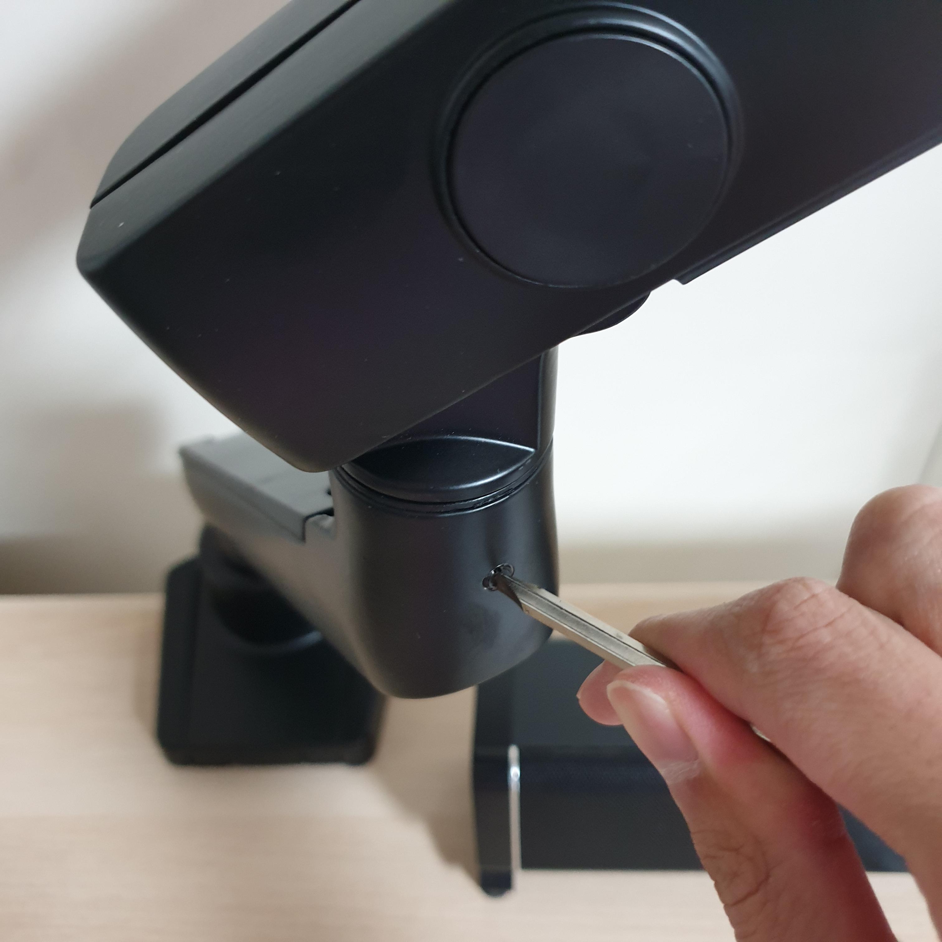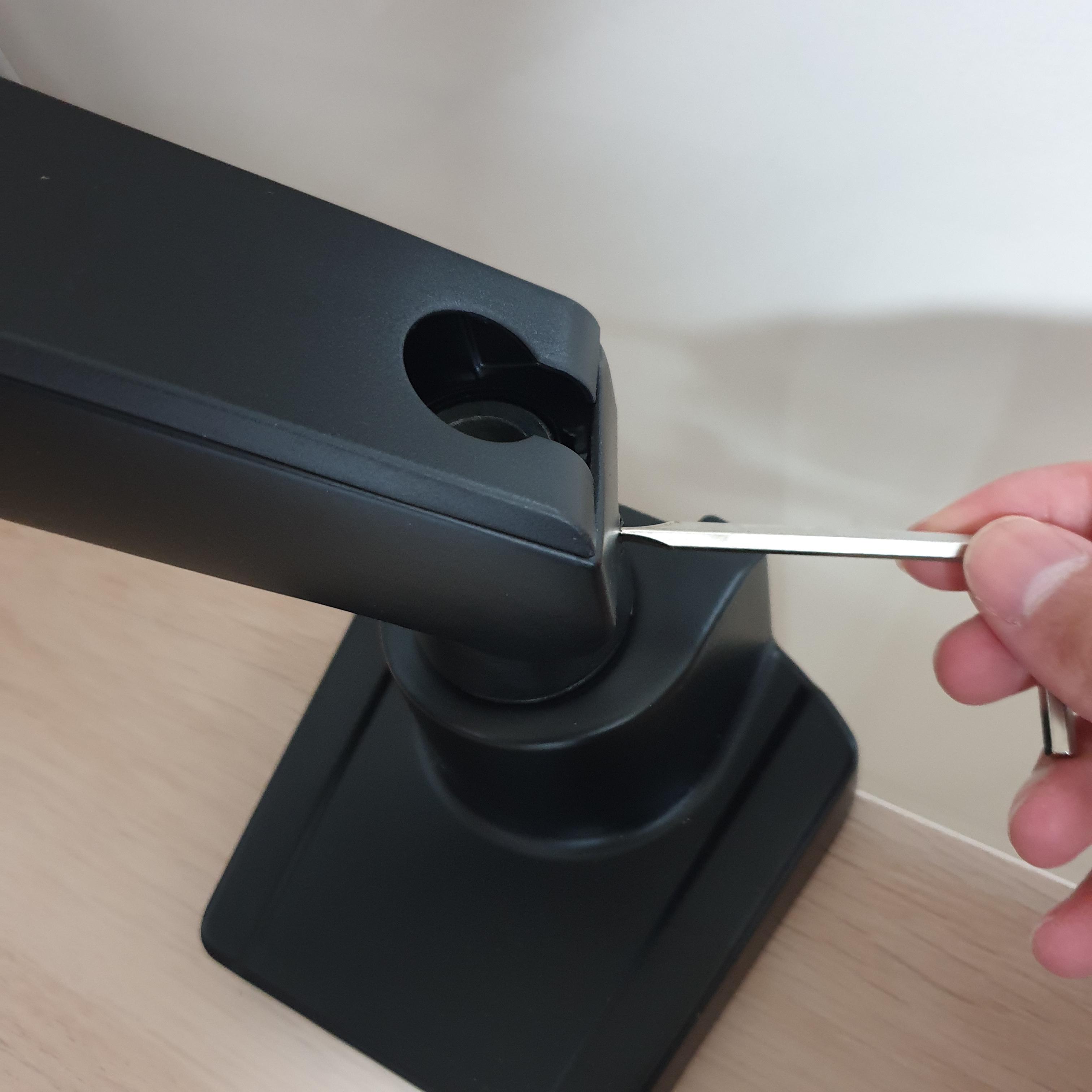 어쨌든 고정한 받침대에 1단 기둥을 꽂고 장력을 조절해준다. 장력은 대충 맞춰놓고 나중에 모니터를 거치한 후에 취향껏 조절하면 된다.