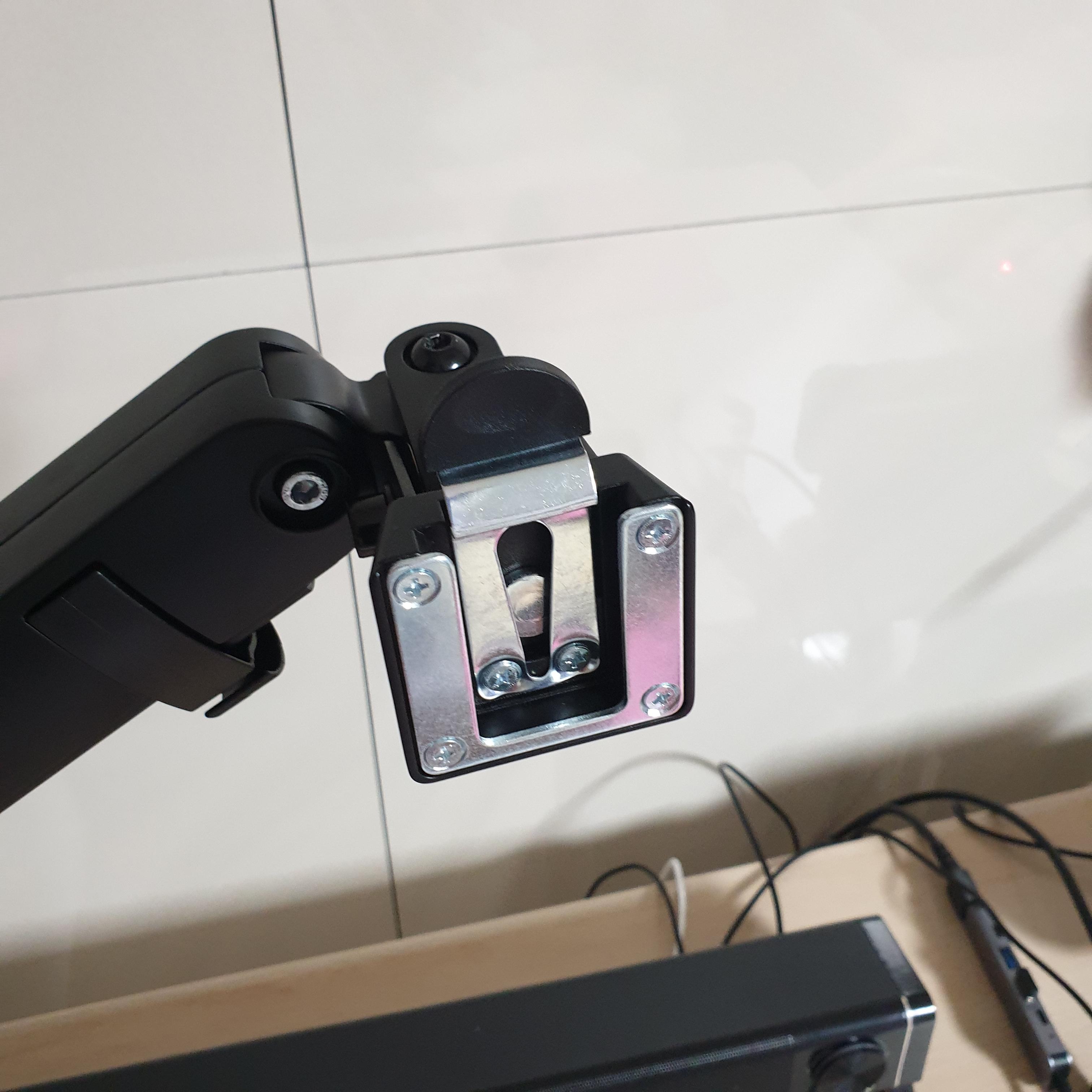 모니터암을 오래 사용해본 경험에 빗대어 조언하고 싶은 내용이 있는데, 받침대 위치에 따라 모니터가 움직일 수 있는 범위가 정해지므로 위치를 잘 잡아야 한다.