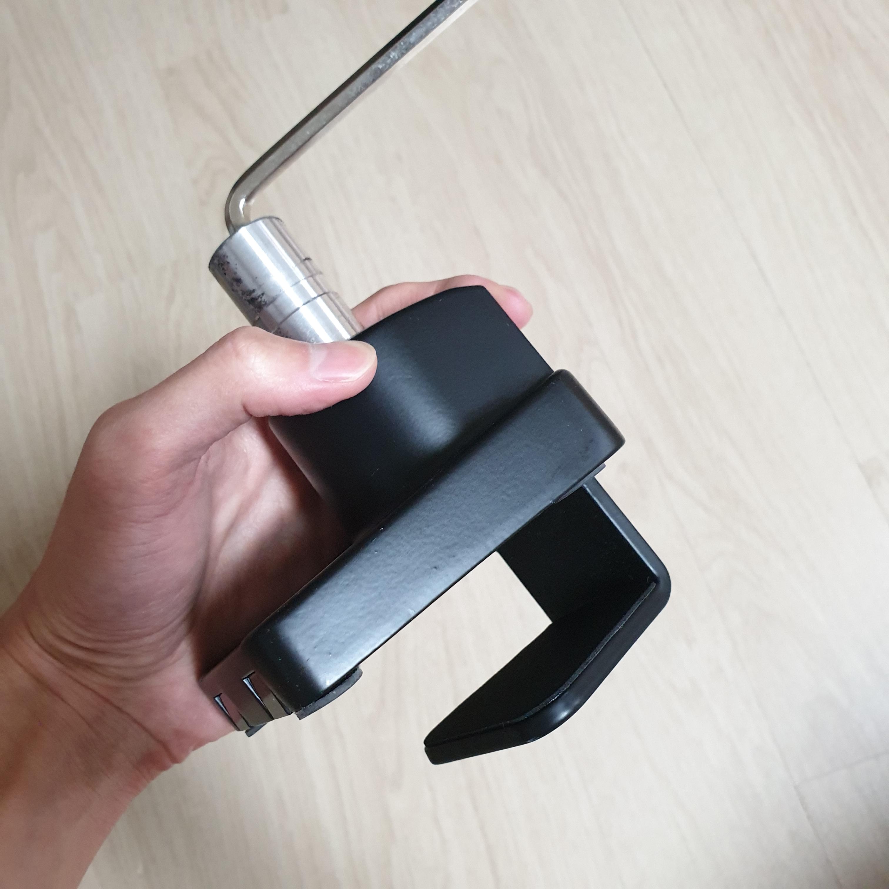 여기서 주의할 점이, 모니터를 지지해야 한다고 너무 무리해서 조이지 말아야한다. 나는 괜히 튼튼하게 한다고 너무 꽉 조여놨더니 나중에 보니까 책상 나무가 일그러져 있더라... 자리를 옮긴 뒤에는 적당히만 고정해놨는데 사용하는 데 아무 지장 없다.