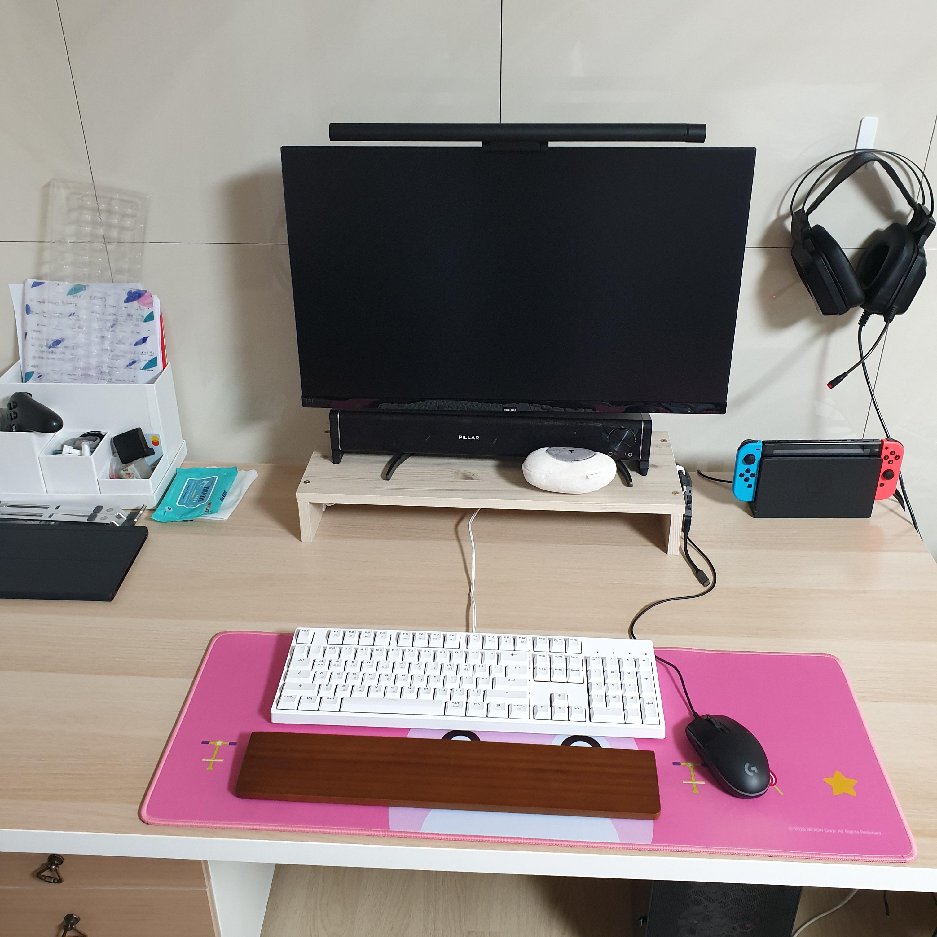 어쨌든 대충 저렇게 책상을 사용하고 있었는데, 요즘은 모니터를 제대로 사용하려면 모니터암은 필수라는 생각이 든다.