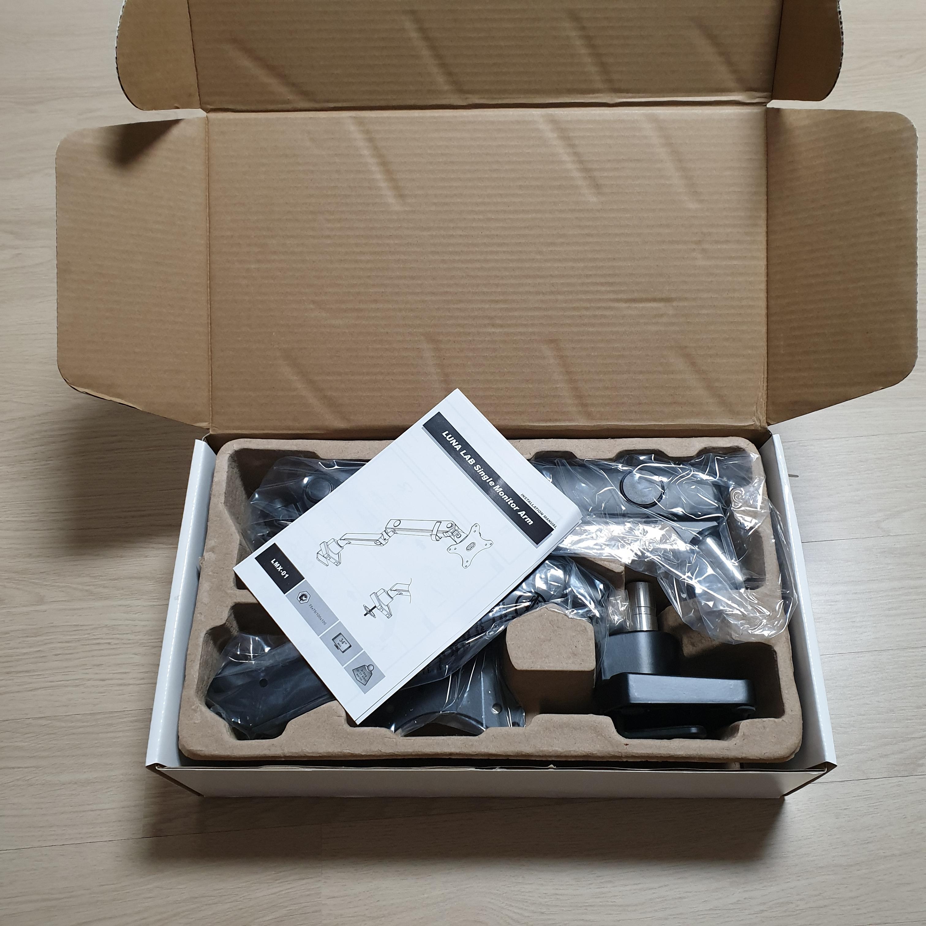 쓸데없는 소리가 좀 길었던 것 같다. 아무튼 모니터암을 구매하게 됐는데, 가격은 좀 나가지만 대체로 평가가 좋았던 루나랩 제품으로 선택했다.
