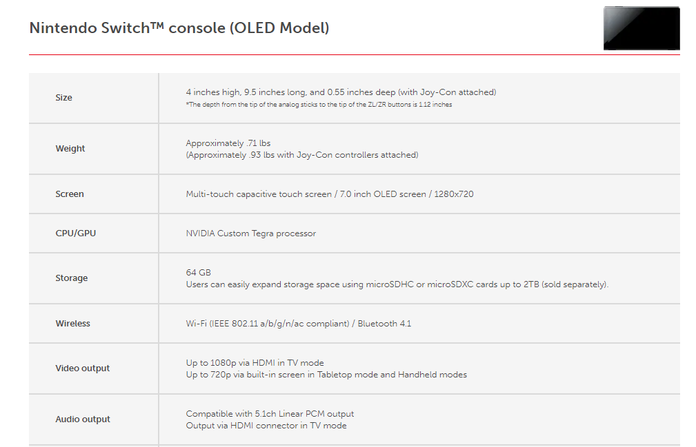 Technical Specs - Nintendo Switch™ - System hardware, console specs - Nintendo - Official Site
