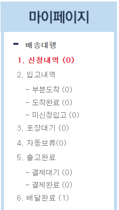 이렇게 배송대행 신청을 모두 끝내면, 직구직구 사이트 내에서 마이페이지를 통해 현황을 확인할 수 있다