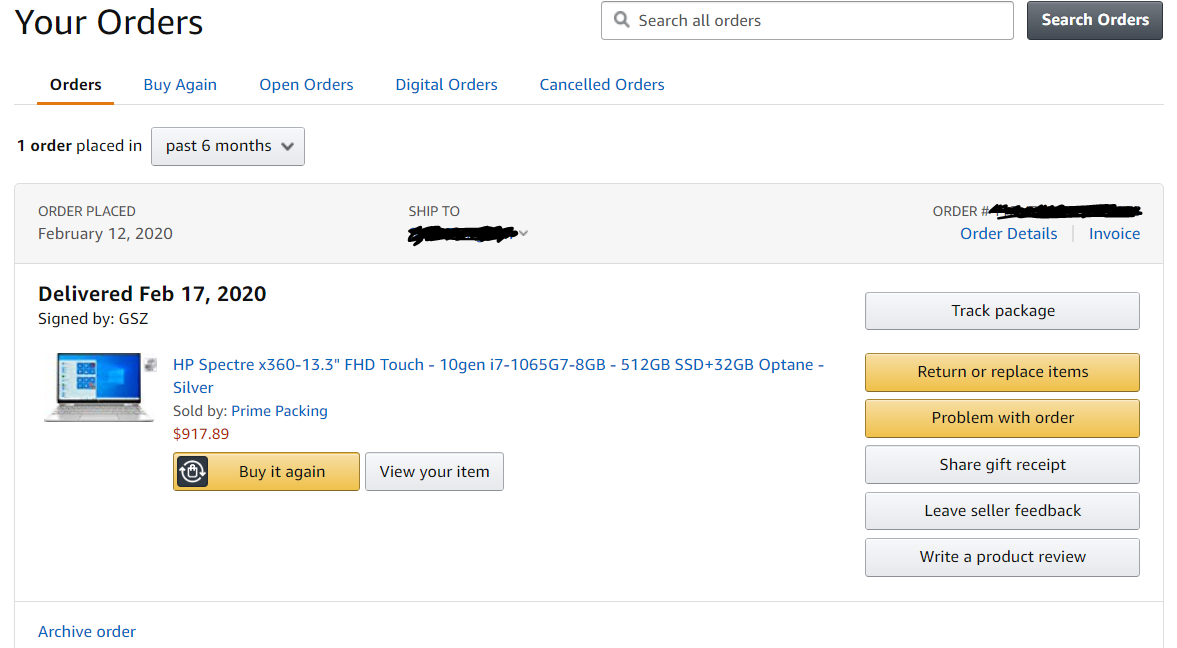 아마존에 로그인하여 Your Orders 페이지로 들어가면 위와 같은 화면이 나온다.