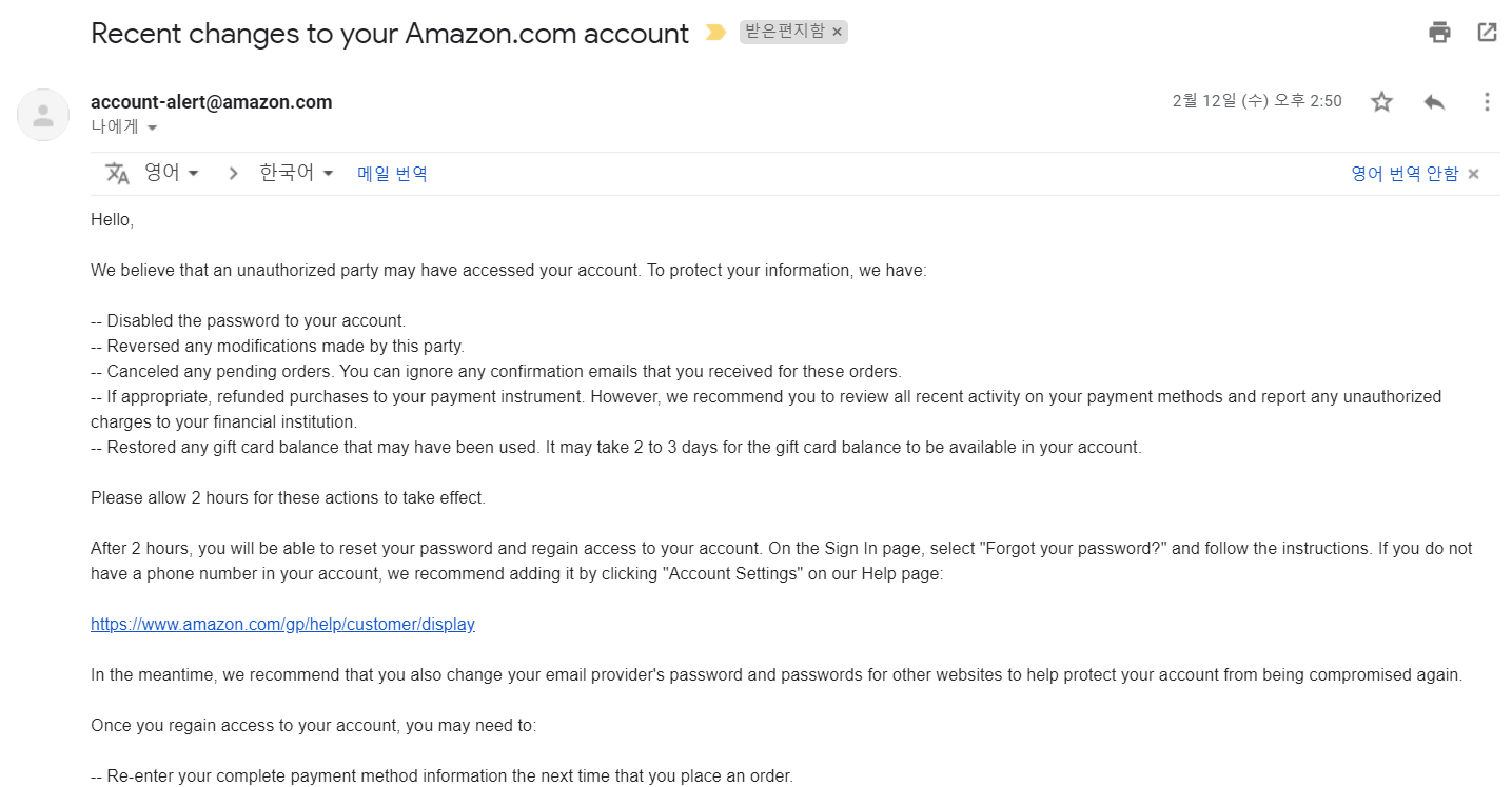 | [아마존 계정 블락] Recent changes to your Amazon.com account 메일을 받았을 때 대처 (0) | 2020.02.29 |