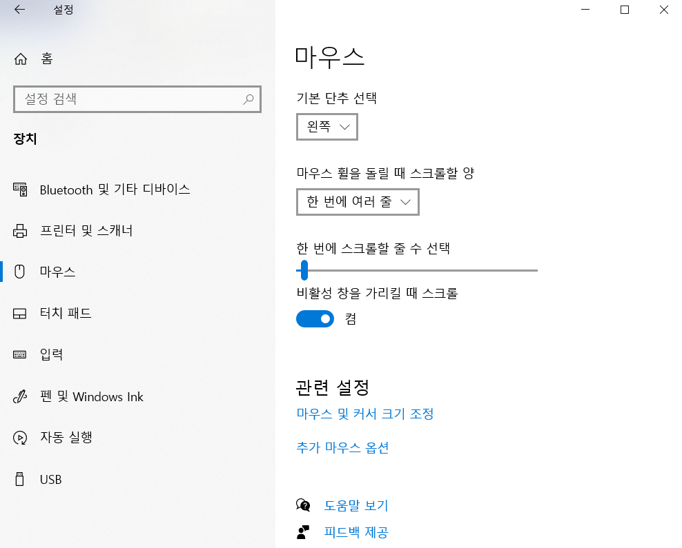 관련 설정 아래에 있는 추가 마우스 옵션 으로 들어가주자