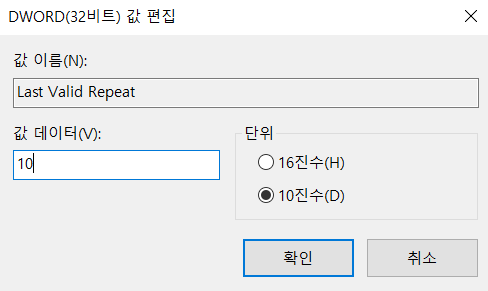 마지막으로 주의할 점은, Last Valid Delay, Last Valid Repeat 두 값은 기본 입력이 16진수로 되어있기에