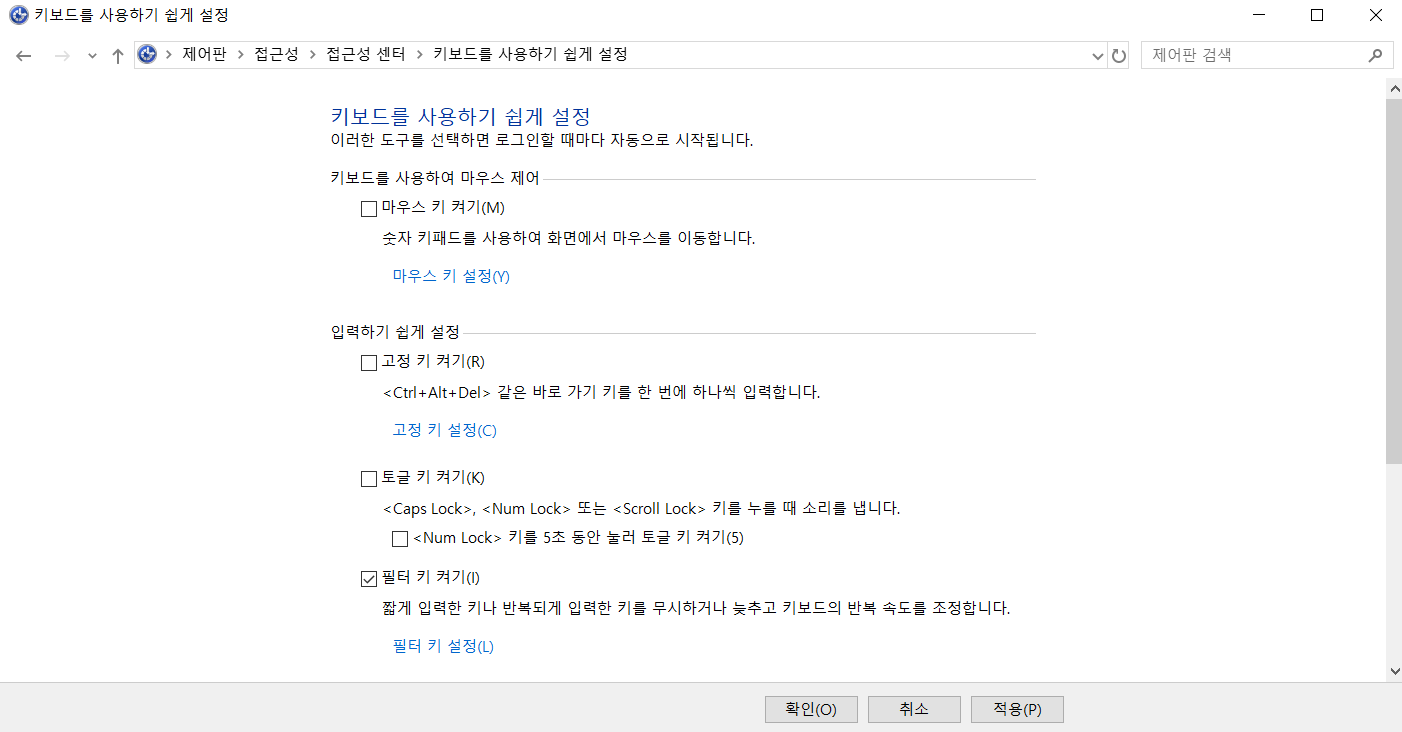 고정키는 악명이 높으니 알아서 꺼주면 되겠고, 이번에는 사진 맨 아래에 보이는 필터키 설정에 들어가야한다