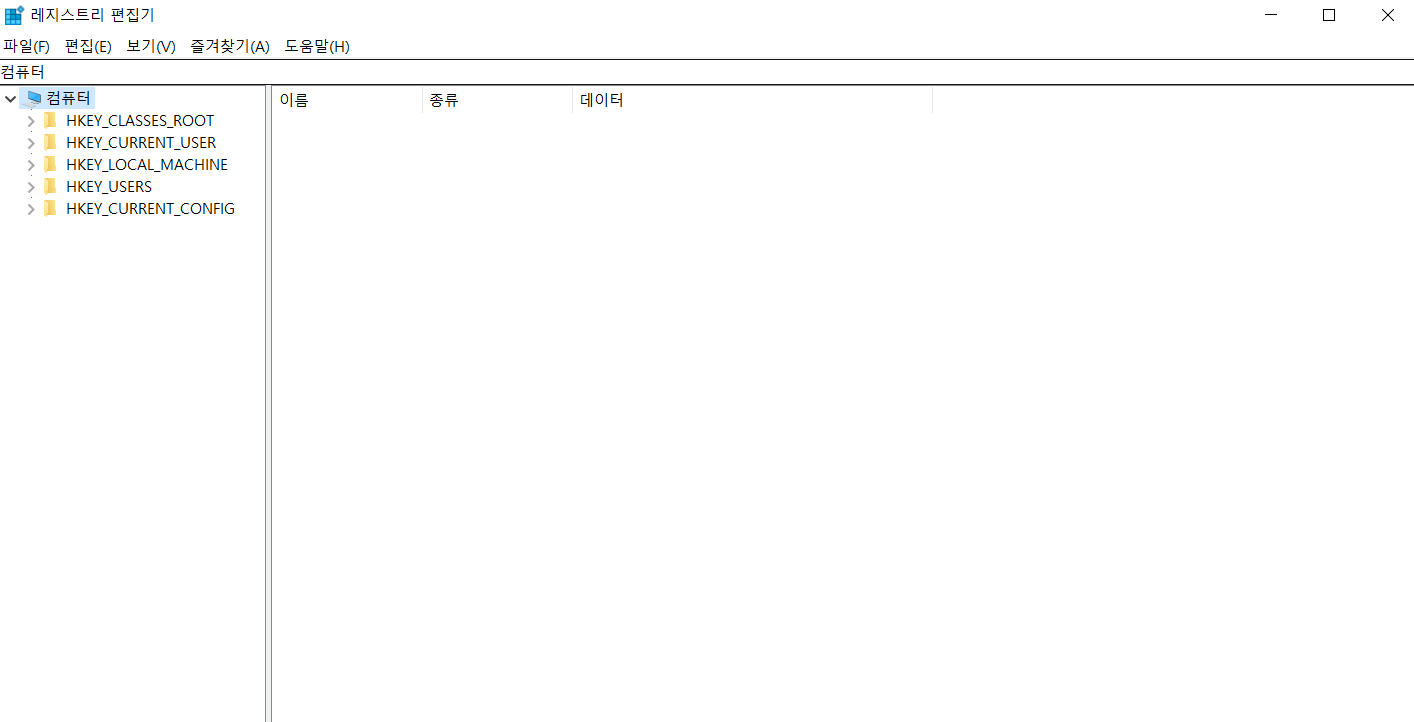 윈도우 검색창에서 regedit 을 입력해 '레지스트리 편집기'를 실행해주자