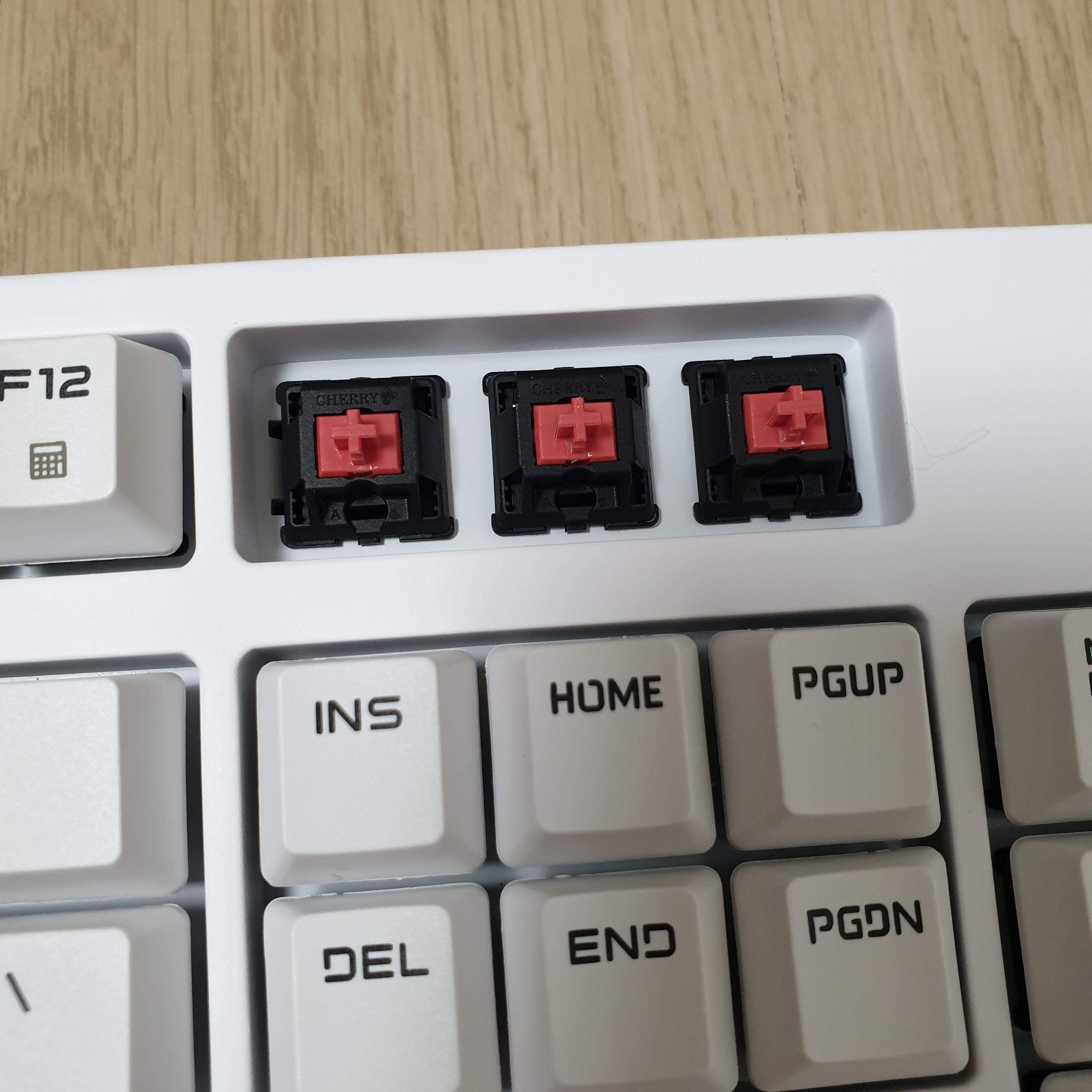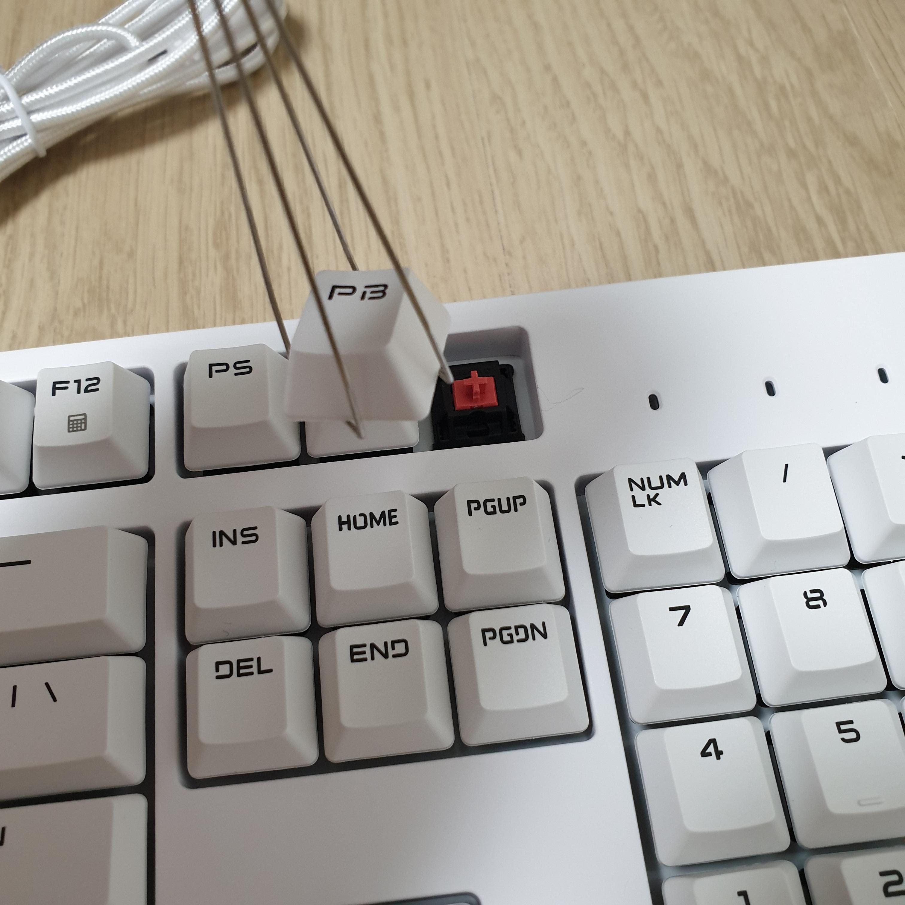 적당한 힘만으로 잘 뽑히지만, 키보드를 손으로 잡아두지 않으면 키캡을 당길 때 키보드 전체가 들린다.