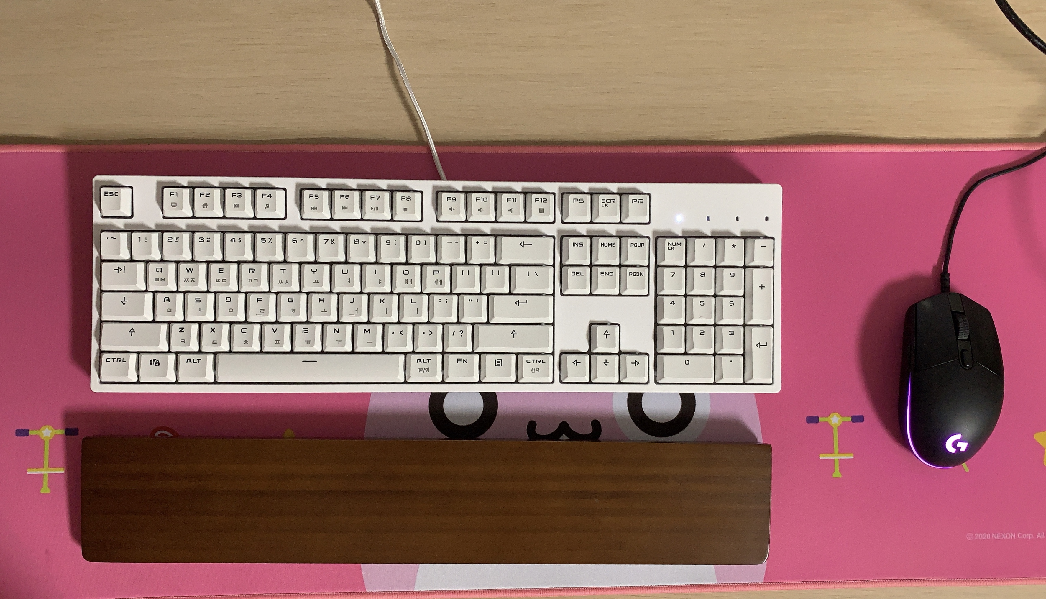 무엇보다도 핑크빈 장패드에 더 잘 어울리는 흰색 키보드라 제일 마음에 든다..ㅎㅎ