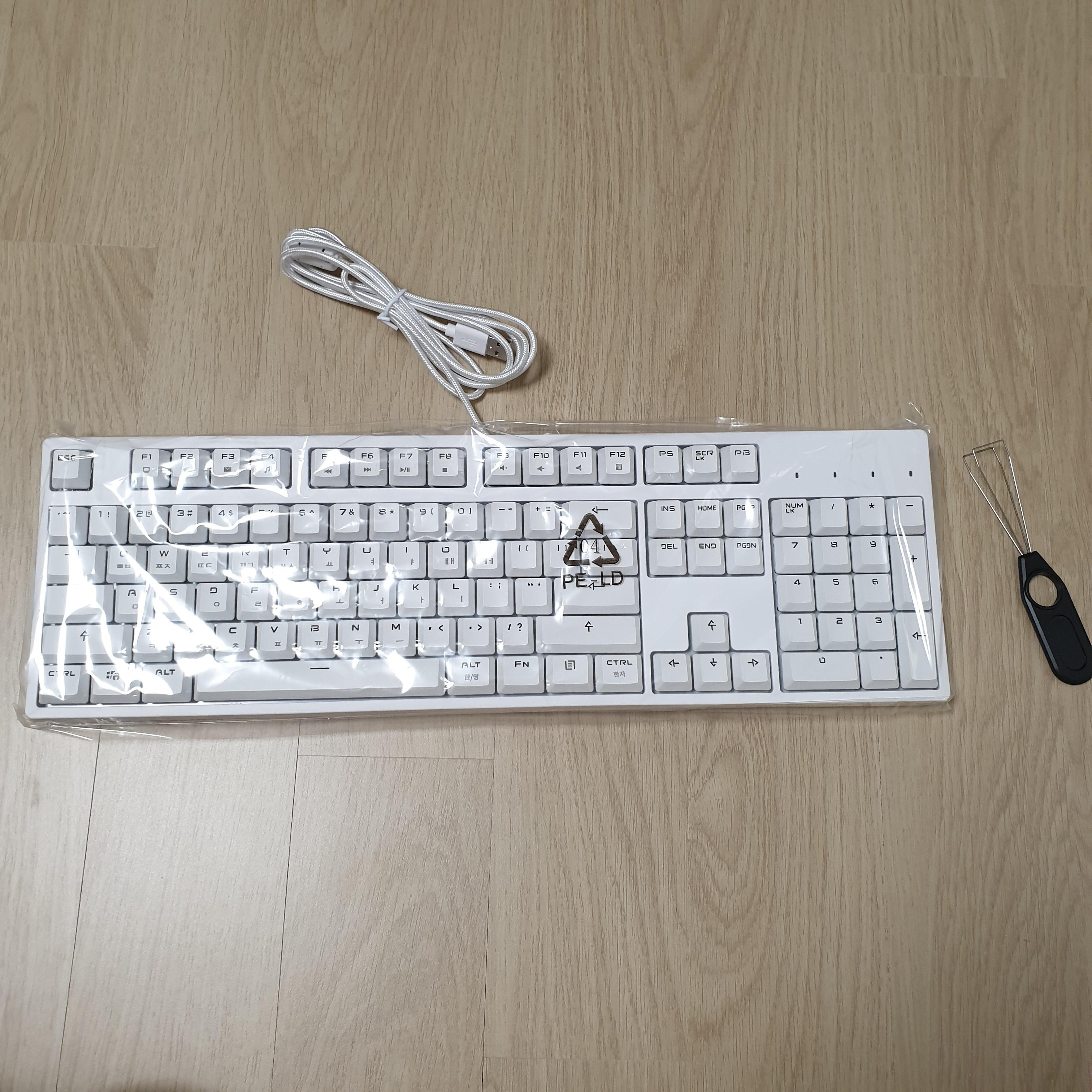 이렇게 비닐백 안에 들어있다. 구성품은 키보드 본체, 케이블, 키캡 리무버로 간단하다.