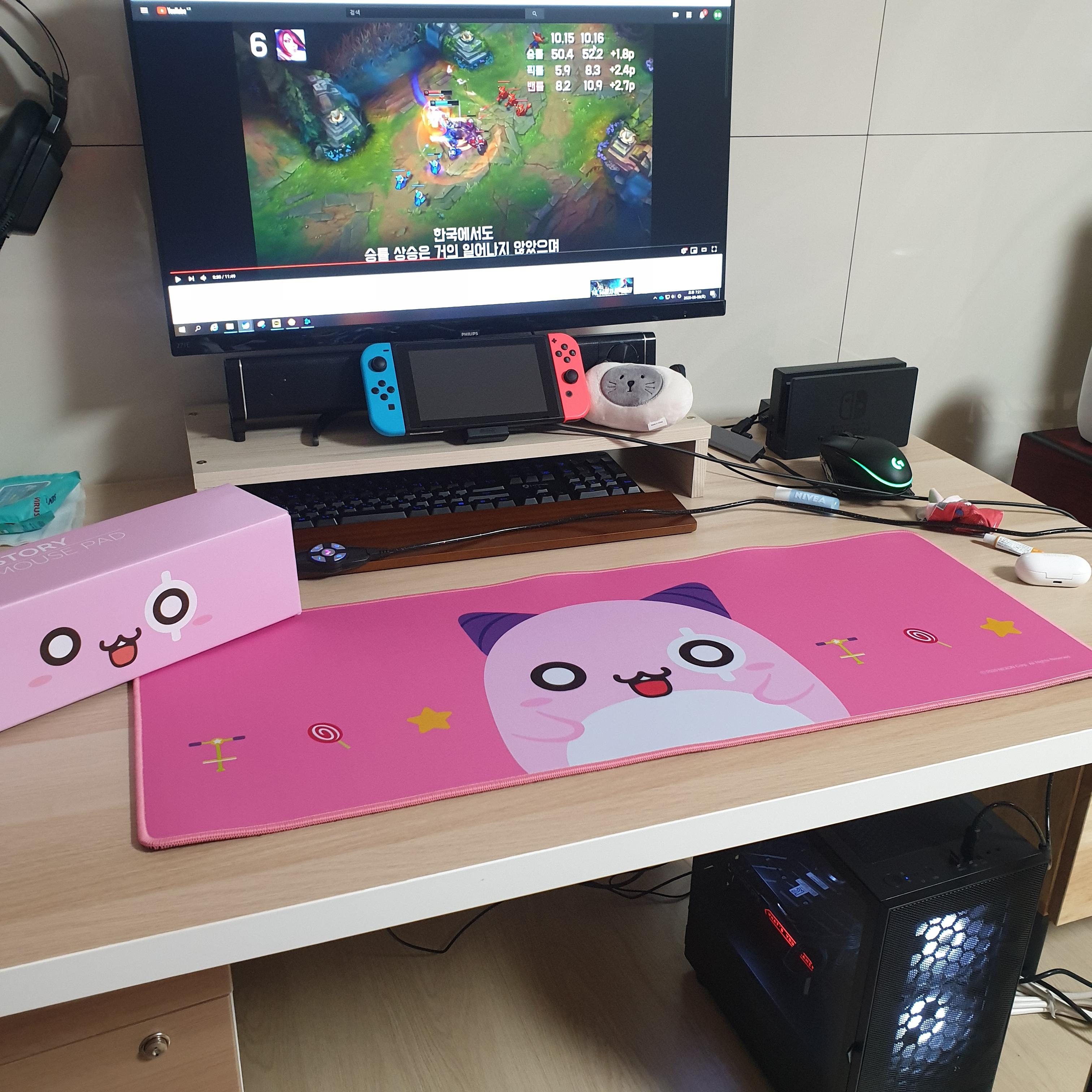 이번에 운좋게 구매한 이 핑크빈 장패드에 드러운 검정 키보드가 너무너무너무 안어울려서.....