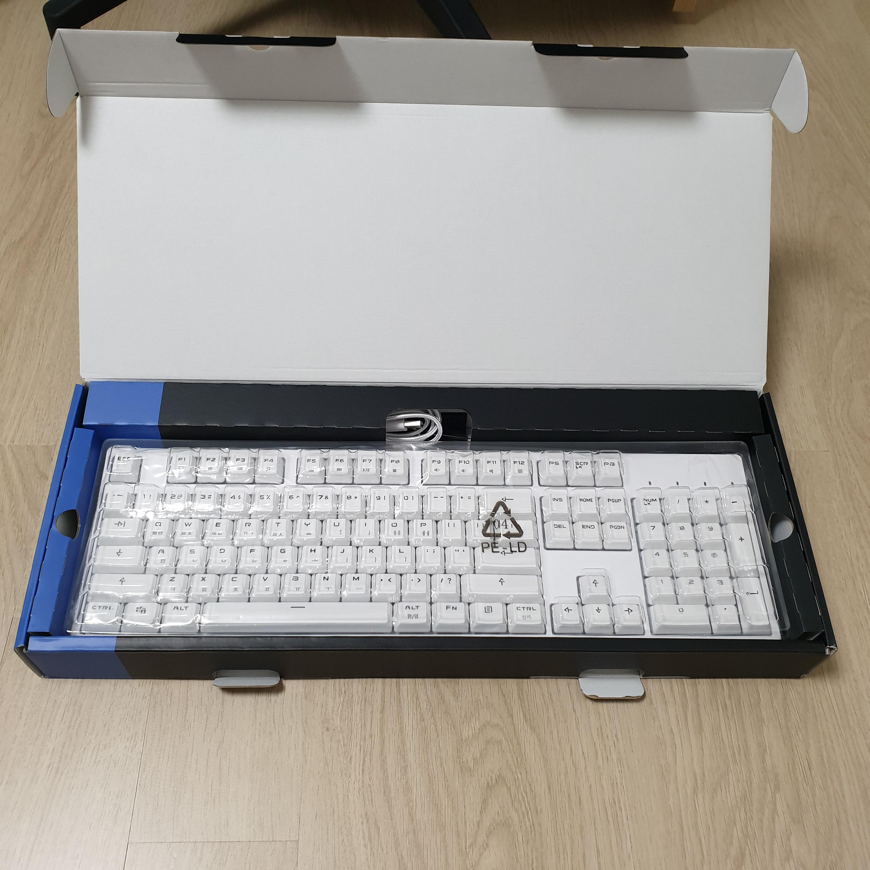 박스를 열어보니 비닐백이 둘러진 키보드 위에 플라스틱 커버가 씌워진 채로 제품이 들어있었다.