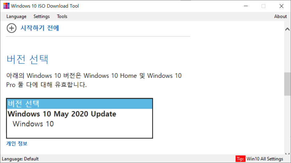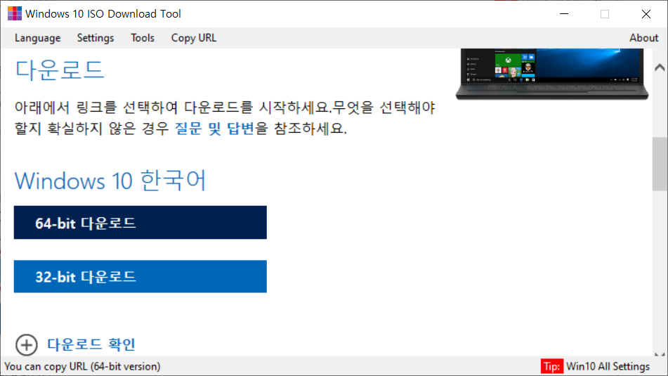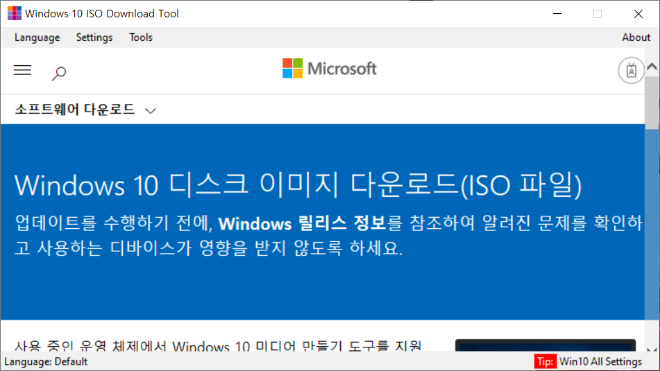 1. 윈도우10 iso 파일을 받을 수 있는 프로그램을 통해 iso파일 다운로드