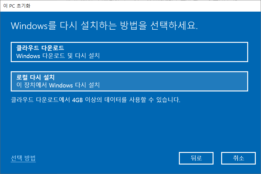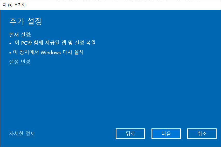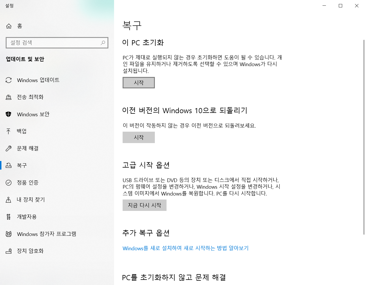 윈도우 7 시절에는 윈도우를 재설치하는 과정이 굉장히 귀찮았지만, 윈도우 10에서는 굉장히 간편하고 직관적으로 발전했다.