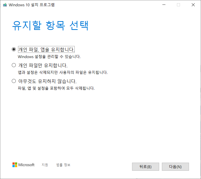 1. 내 파일 유지 - 앱 및 설정을 제거하지만 개인 파일은 유지합니다.