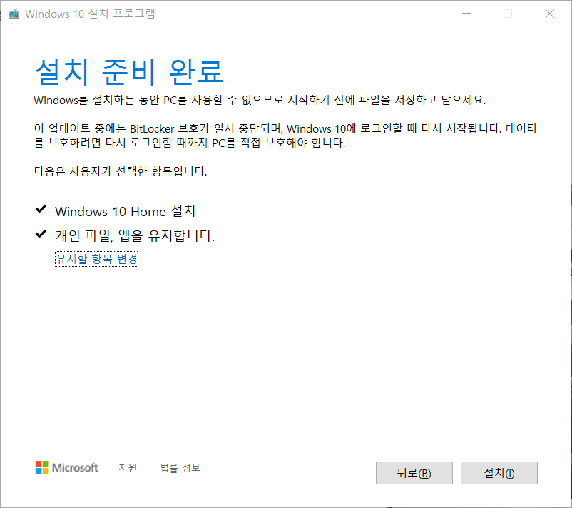 윈도우 10 인플레이스를 통한 윈도우 재설치