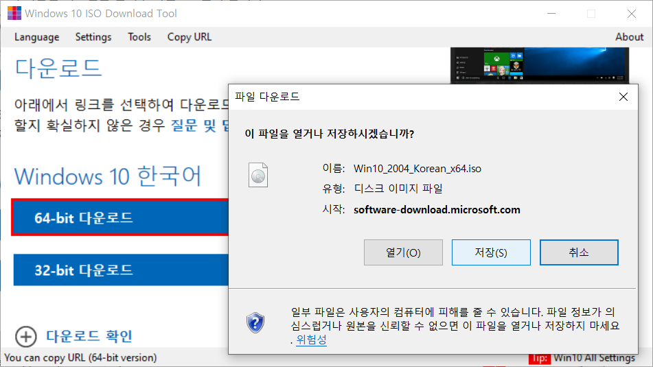 이 프로그램을 통해 윈도우10 iso 파일을 다운 받을 것이다.