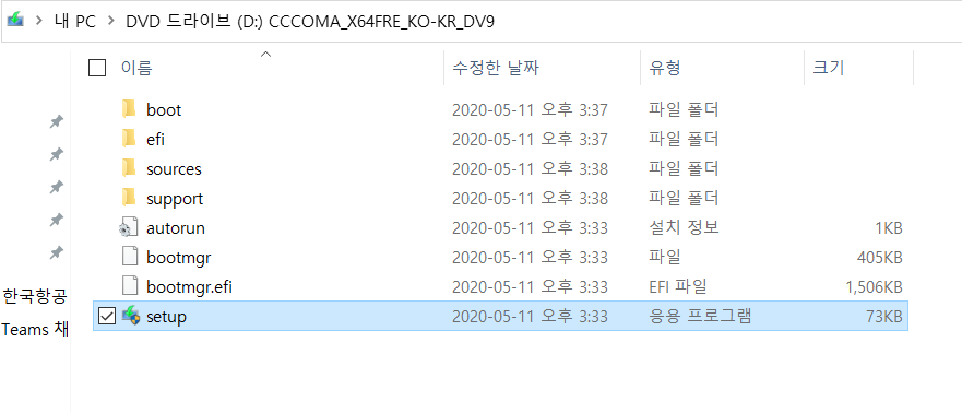 실제로는 iso 파일이 마운트되어 새로운 가상의 드라이브가 생긴 것이다. 아무튼 맨 아래 setup 파일을 실행하자.