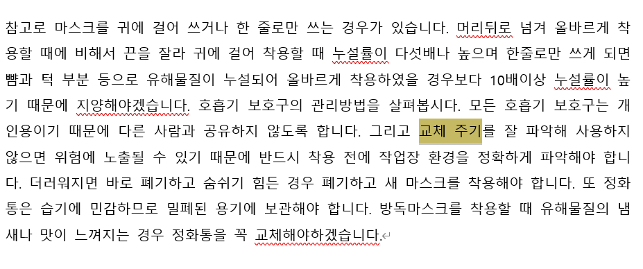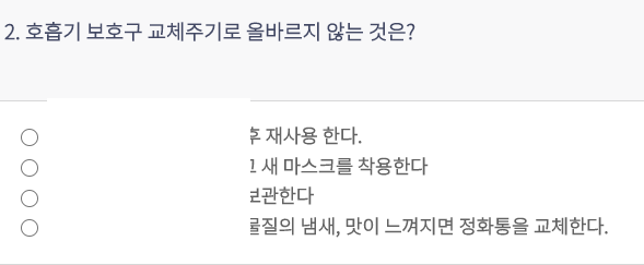 위와같은 문제가 나왔다. 호흡기 보호구 교체주기가 키워드일 것이다.