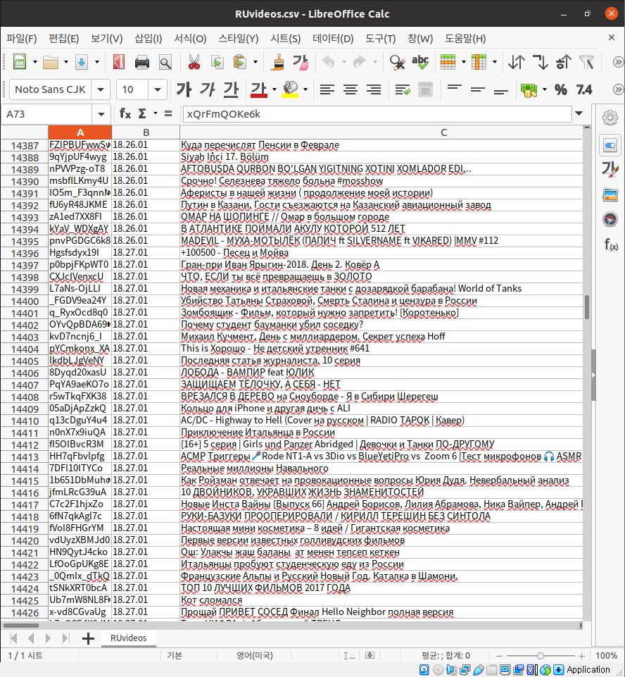 아무튼 반복 횟수는 전체 파일을 저장한 cpudata의 행 수를 기준으로 정했다. 파일을 확인하니 내가 18초부터 32초까지 총 15초를 측정한 것을 확인했다.