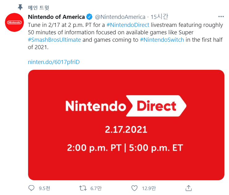 어제자로 무려 532일 만의 닌텐도 다이렉트 일정이 공개되었다.
